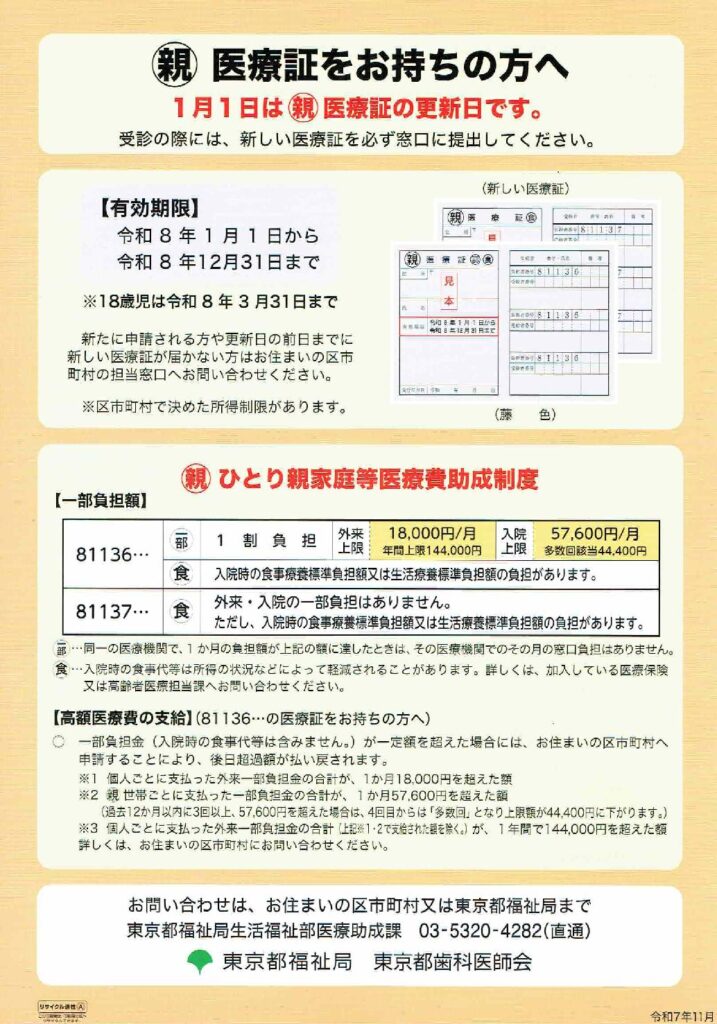 令和8年1月1日はひとり親家庭等医療証の更新日です。